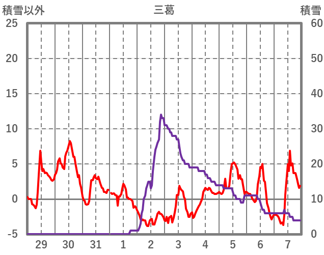 | 日 | 時 | 気温 | 降水 | 風向/風速 | 日照 | 積雪 | 降雪 |