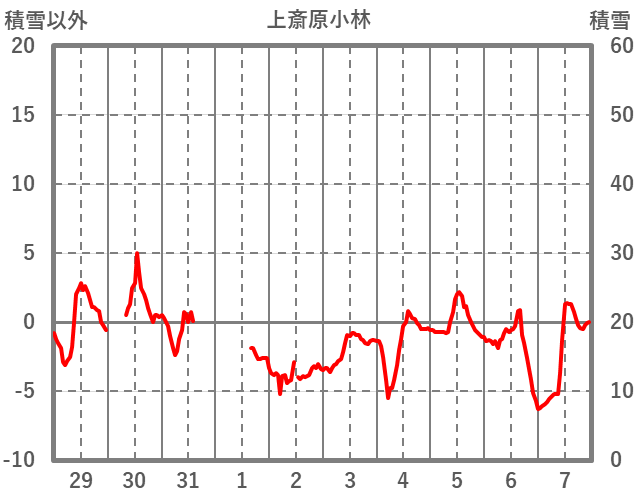 | 日 | 時 | 気温 | 降水 | 風向/風速 | 日照 | 積雪 | 降雪 |