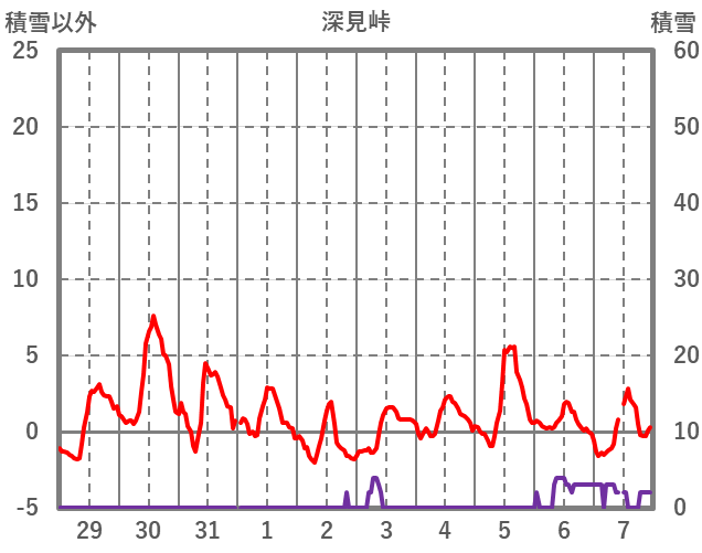 | 日 | 時 | 気温 | 降水 | 風向/風速 | 日照 | 積雪 | 降雪 |