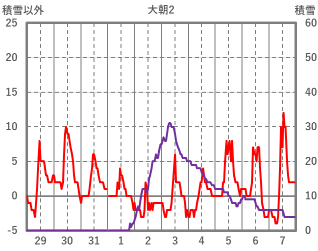 | 日 | 時 | 気温 | 降水 | 風向/風速 | 日照 | 積雪 | 降雪 |