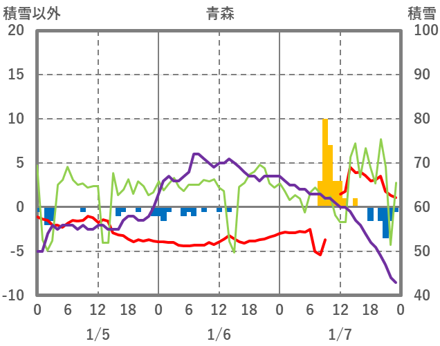 | 日 | 時 | 気温 | 降水 | 風向/風速 | 日照 | 積雪 | 降雪 |