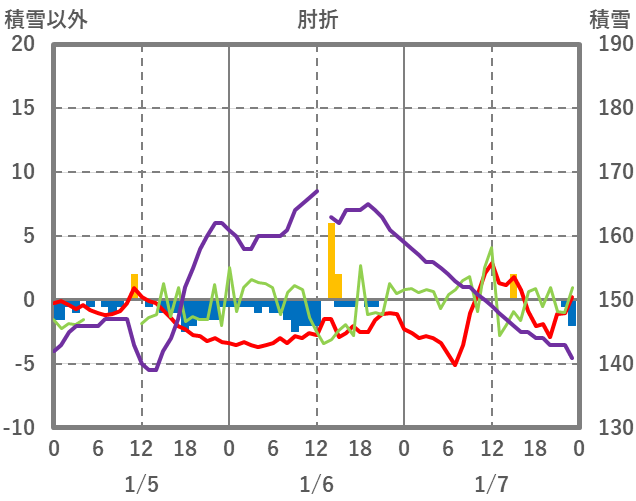 | 日 | 時 | 気温 | 降水 | 風向/風速 | 日照 | 積雪 | 降雪 |