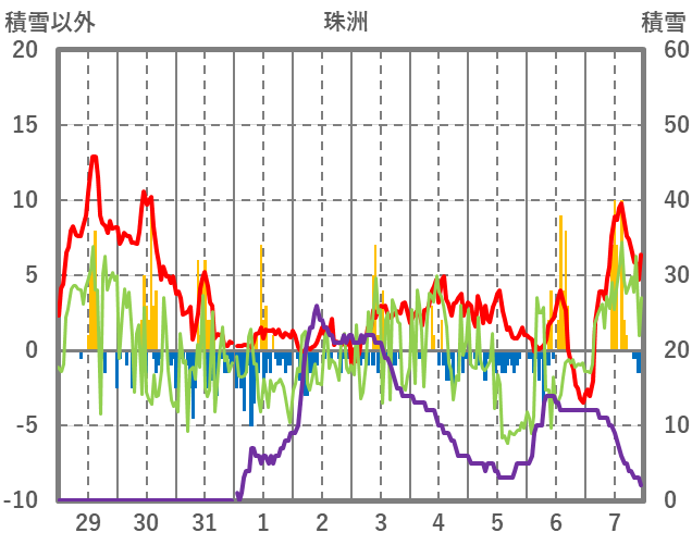 | 日 | 時 | 気温 | 降水 | 風向/風速 | 日照 | 積雪 | 降雪 |