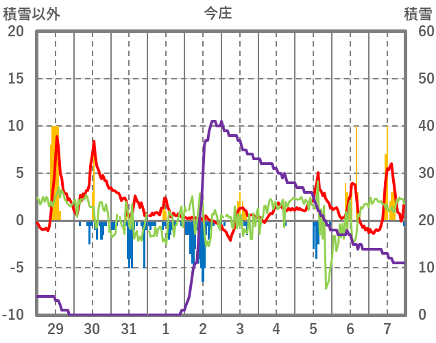 | 日 | 時 | 気温 | 降水 | 風向/風速 | 日照 | 積雪 | 降雪 |