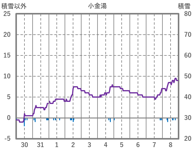 | 日 | 時 | 気温 | 降水 | 風向/風速 | 日照 | 積雪 | 降雪 |