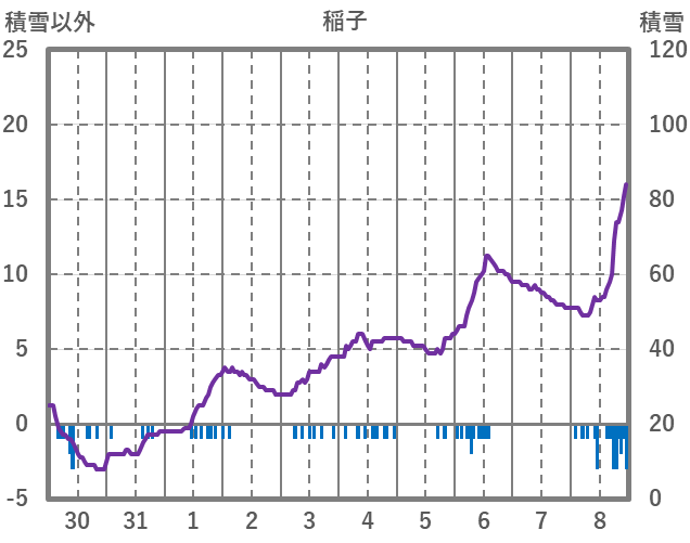 | 日 | 時 | 気温 | 降水 | 風向/風速 | 日照 | 積雪 | 降雪 |