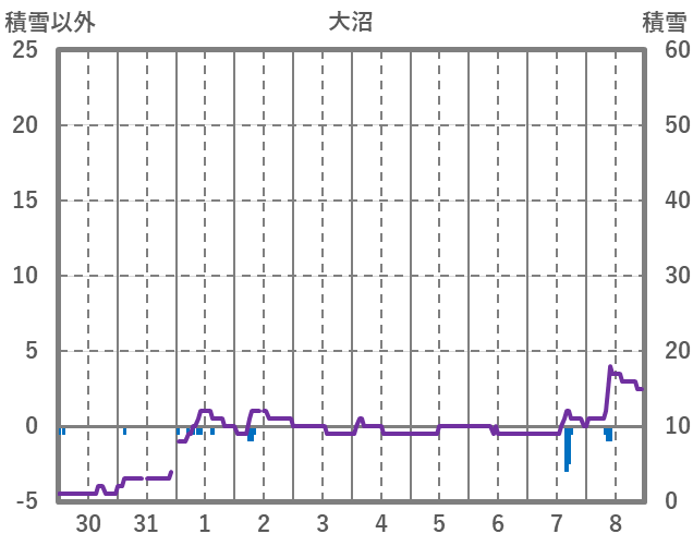 | 日 | 時 | 気温 | 降水 | 風向/風速 | 日照 | 積雪 | 降雪 |