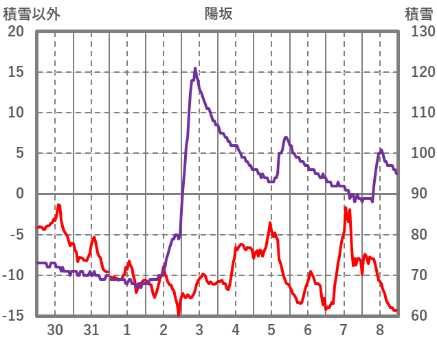 | 日 | 時 | 気温 | 降水 | 風向/風速 | 日照 | 積雪 | 降雪 |