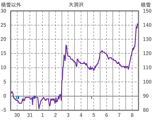 | 日 | 時 | 気温 | 降水 | 風向/風速 | 日照 | 積雪 | 降雪 |