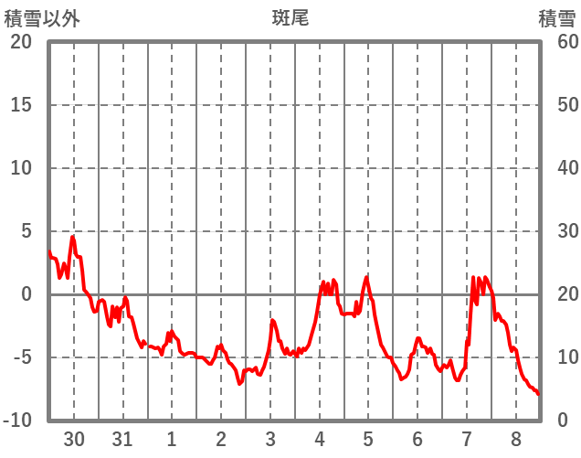 | 日 | 時 | 気温 | 降水 | 風向/風速 | 日照 | 積雪 | 降雪 |