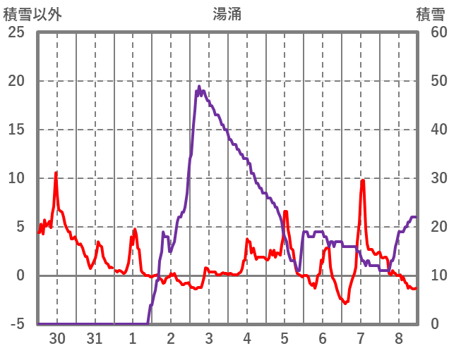| 日 | 時 | 気温 | 降水 | 風向/風速 | 日照 | 積雪 | 降雪 |