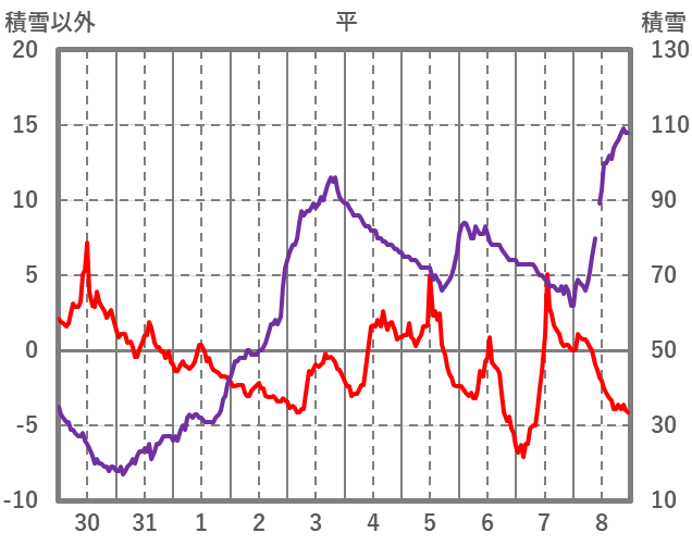 | 日 | 時 | 気温 | 降水 | 風向/風速 | 日照 | 積雪 | 降雪 |