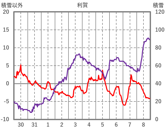 | 日 | 時 | 気温 | 降水 | 風向/風速 | 日照 | 積雪 | 降雪 |