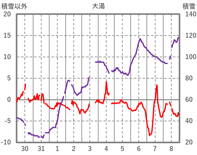 | 日 | 時 | 気温 | 降水 | 風向/風速 | 日照 | 積雪 | 降雪 |