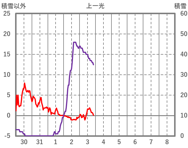 | 日 | 時 | 気温 | 降水 | 風向/風速 | 日照 | 積雪 | 降雪 |