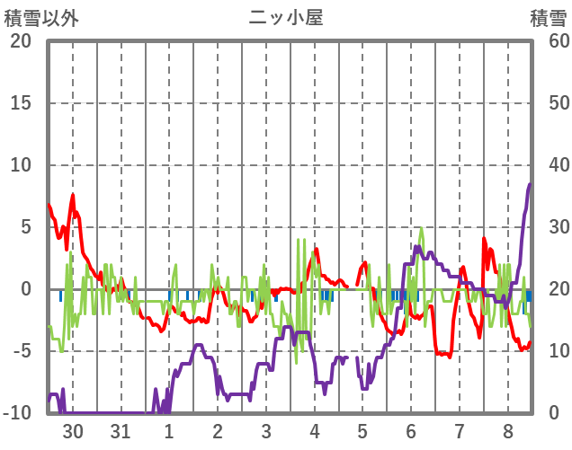 | 日 | 時 | 気温 | 降水 | 風向/風速 | 日照 | 積雪 | 降雪 |