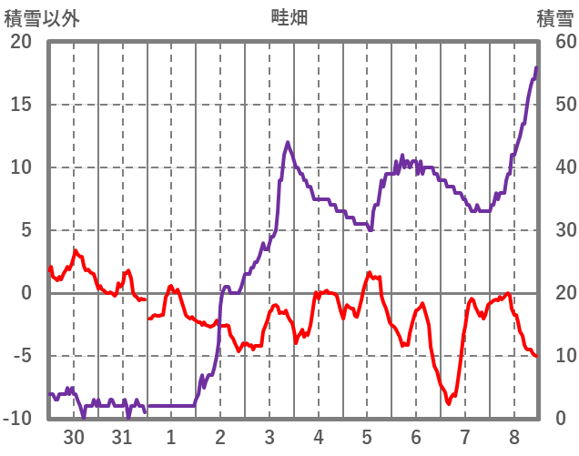 | 日 | 時 | 気温 | 降水 | 風向/風速 | 日照 | 積雪 | 降雪 |
