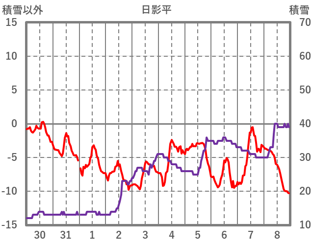 | 日 | 時 | 気温 | 降水 | 風向/風速 | 日照 | 積雪 | 降雪 |
