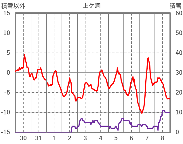 | 日 | 時 | 気温 | 降水 | 風向/風速 | 日照 | 積雪 | 降雪 |