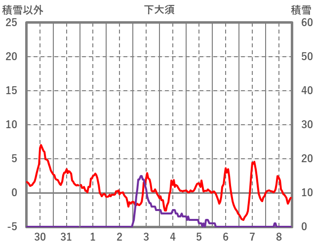 | 日 | 時 | 気温 | 降水 | 風向/風速 | 日照 | 積雪 | 降雪 |
