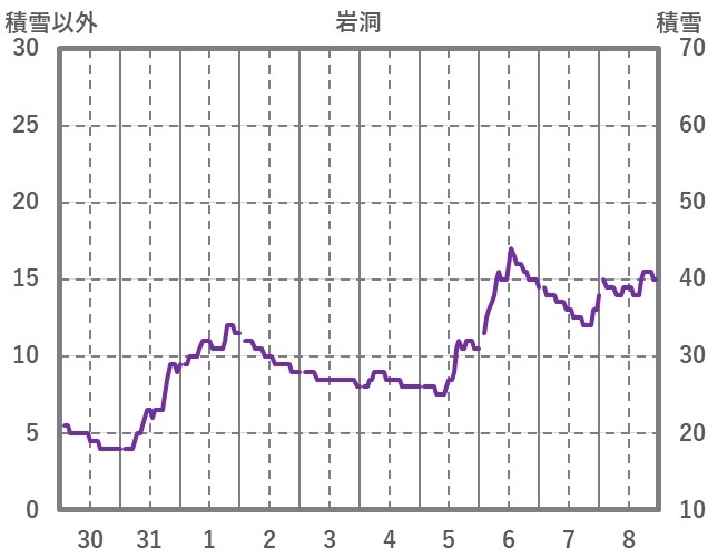 | 日 | 時 | 気温 | 降水 | 風向/風速 | 日照 | 積雪 | 降雪 |