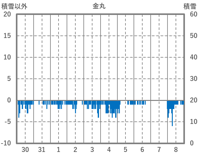 | 日 | 時 | 気温 | 降水 | 風向/風速 | 日照 | 積雪 | 降雪 |