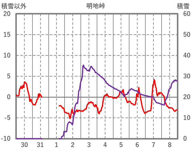 | 日 | 時 | 気温 | 降水 | 風向/風速 | 日照 | 積雪 | 降雪 |
