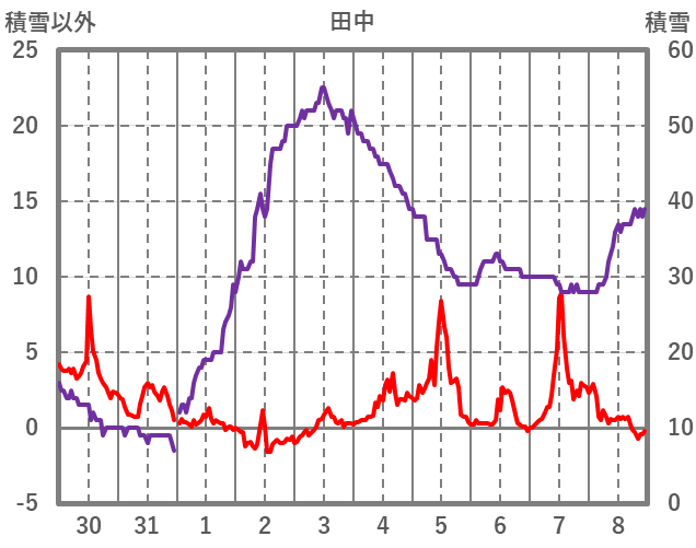 | 日 | 時 | 気温 | 降水 | 風向/風速 | 日照 | 積雪 | 降雪 |