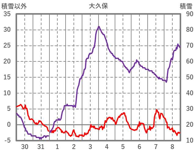| 日 | 時 | 気温 | 降水 | 風向/風速 | 日照 | 積雪 | 降雪 |