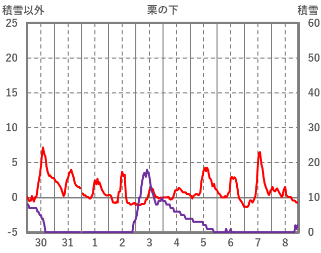 | 日 | 時 | 気温 | 降水 | 風向/風速 | 日照 | 積雪 | 降雪 |