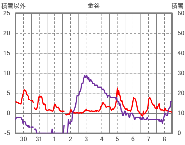 | 日 | 時 | 気温 | 降水 | 風向/風速 | 日照 | 積雪 | 降雪 |