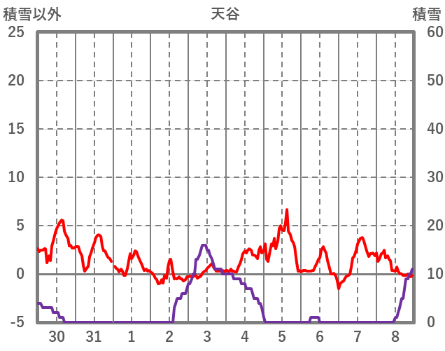 | 日 | 時 | 気温 | 降水 | 風向/風速 | 日照 | 積雪 | 降雪 |