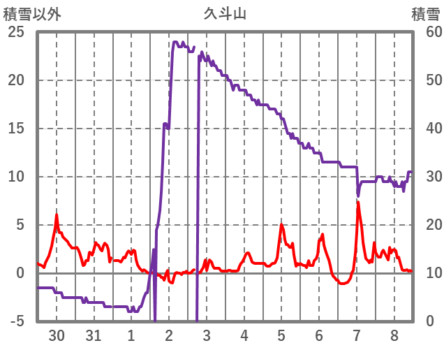 | 日 | 時 | 気温 | 降水 | 風向/風速 | 日照 | 積雪 | 降雪 |