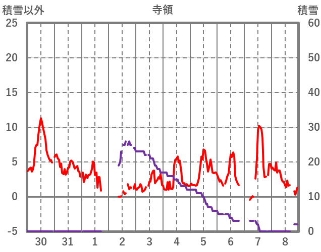 | 日 | 時 | 気温 | 降水 | 風向/風速 | 日照 | 積雪 | 降雪 |