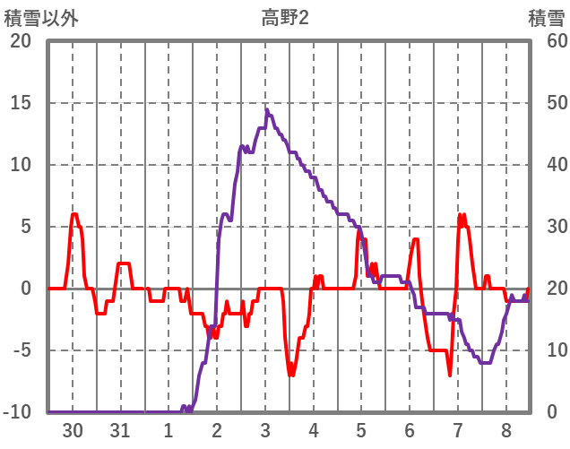 | 日 | 時 | 気温 | 降水 | 風向/風速 | 日照 | 積雪 | 降雪 |
