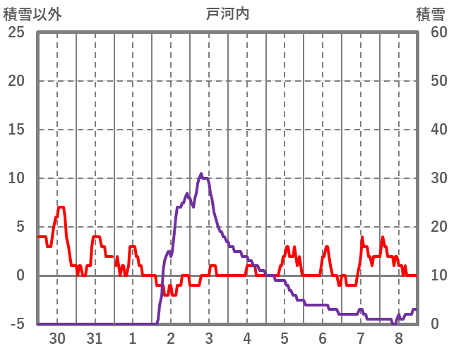 | 日 | 時 | 気温 | 降水 | 風向/風速 | 日照 | 積雪 | 降雪 |