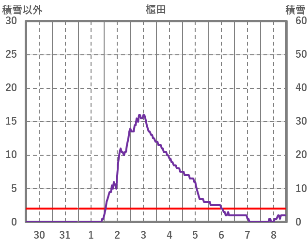 | 日 | 時 | 気温 | 降水 | 風向/風速 | 日照 | 積雪 | 降雪 |