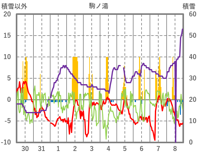 | 日 | 時 | 気温 | 降水 | 風向/風速 | 日照 | 積雪 | 降雪 |