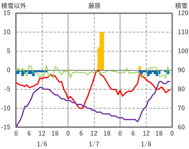| 日 | 時 | 気温 | 降水 | 風向/風速 | 日照 | 積雪 | 降雪 |