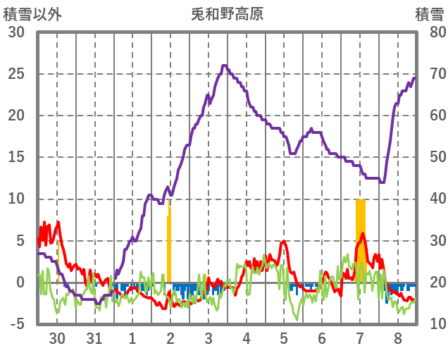 | 日 | 時 | 気温 | 降水 | 風向/風速 | 日照 | 積雪 | 降雪 |