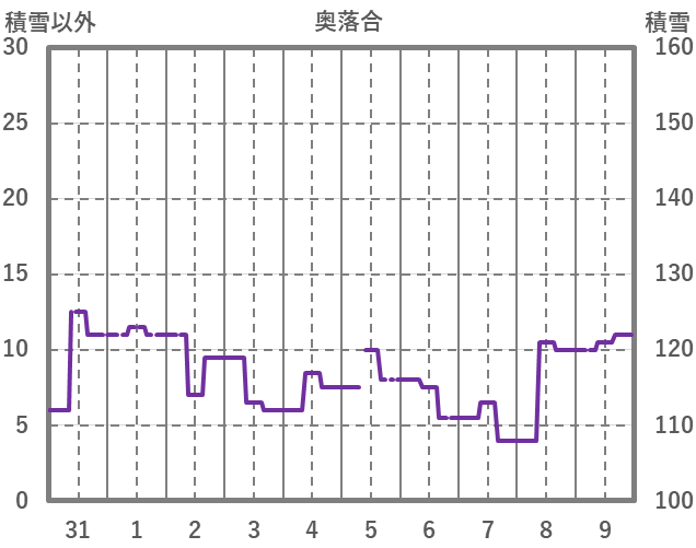 | 日 | 時 | 気温 | 降水 | 風向/風速 | 日照 | 積雪 | 降雪 |