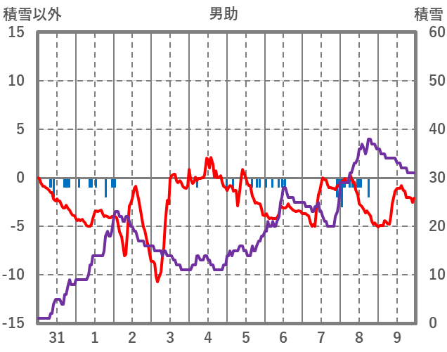 | 日 | 時 | 気温 | 降水 | 風向/風速 | 日照 | 積雪 | 降雪 |