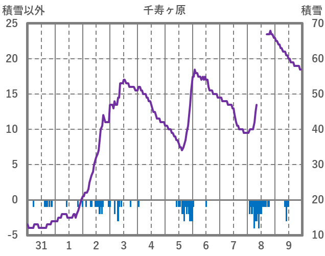 | 日 | 時 | 気温 | 降水 | 風向/風速 | 日照 | 積雪 | 降雪 |