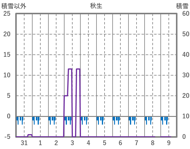 | 日 | 時 | 気温 | 降水 | 風向/風速 | 日照 | 積雪 | 降雪 |