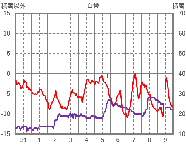 | 日 | 時 | 気温 | 降水 | 風向/風速 | 日照 | 積雪 | 降雪 |