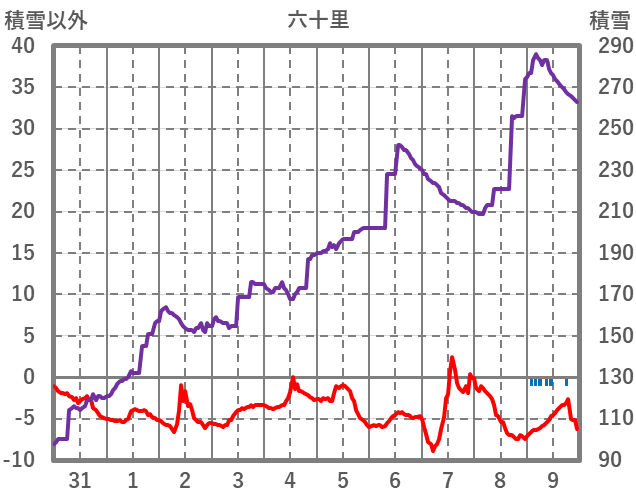 | 日 | 時 | 気温 | 降水 | 風向/風速 | 日照 | 積雪 | 降雪 |