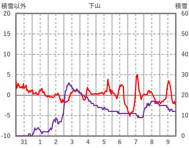 | 日 | 時 | 気温 | 降水 | 風向/風速 | 日照 | 積雪 | 降雪 |