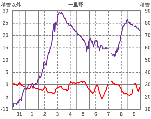 | 日 | 時 | 気温 | 降水 | 風向/風速 | 日照 | 積雪 | 降雪 |