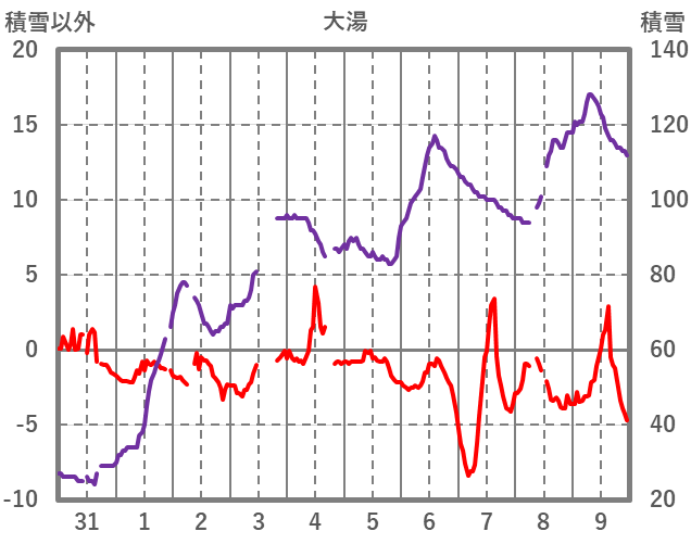 | 日 | 時 | 気温 | 降水 | 風向/風速 | 日照 | 積雪 | 降雪 |
