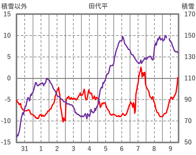 | 日 | 時 | 気温 | 降水 | 風向/風速 | 日照 | 積雪 | 降雪 |